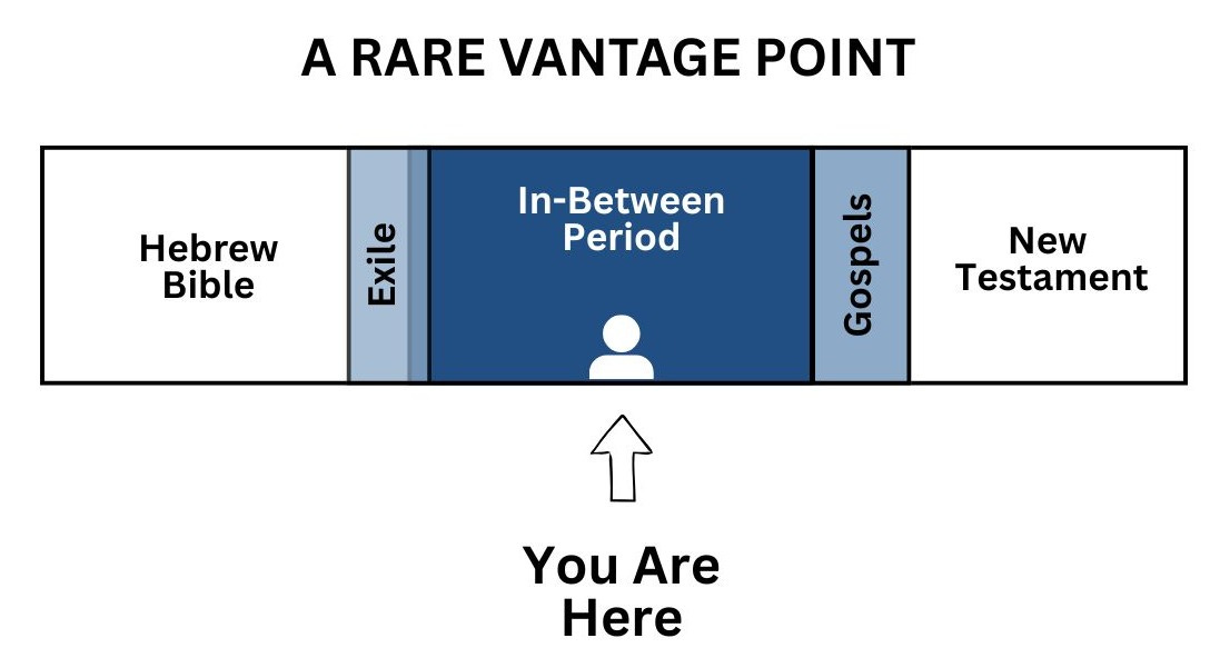 Most come at Jesus from the present looking back via Luther, Augustine, and Paul. You get to approach from the in-between period, between the Hebrew Bible and the New Testament. This is a rare vantage point as you arrive “on the scene” before Jesus, and before the gospel writers, Paul or any ancient theologian has commented on his life. There are no doctrines or beliefs you must uphold to enter the story.